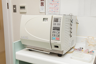 常に患者様に安心して治療を受けて頂く為、様々な機器の揃う滅菌室で日々器具の消毒を行っております。