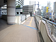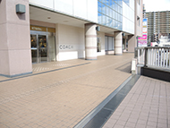 ①JR草津駅の東口を出たら、真っ直ぐ進んでください。